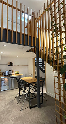 Notre espace de coworking est un endroit parfait pour travailler dans une atmosphère calme et conviviale. Nous mettons à disposition une machine à café et du thé à volonté, ainsi qu'une cuisine équipée pour vous permettre de vous préparer un repas ou une collation à tout moment de la journée.